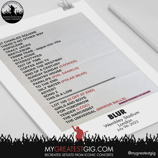 Blur - Wembley - July 9th 2023 Recreated Setlist Poster