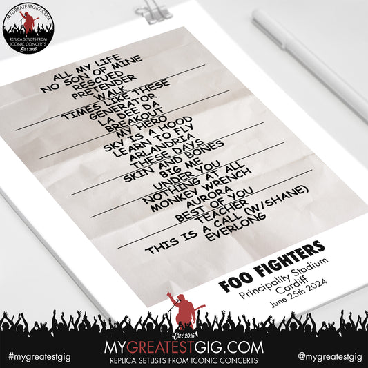 Foo Fighters - Cardiff - June 25th 2024 Replica Setlist Poster