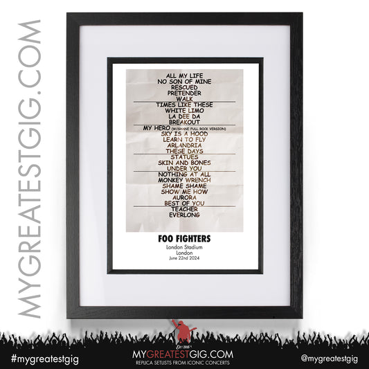 Foo Fighters - London - June 20th/22nd 2024 Replica Setlist Poster