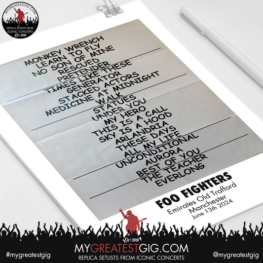 Foo Fighters - Manchester - June 13th 2024 Replica Setlist Poster