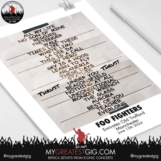 Foo Fighters - Manchester - June 15th 2024 Replica Setlist Poster