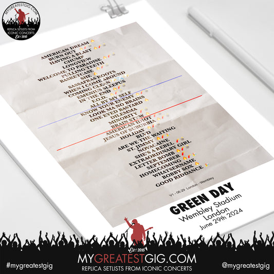 Green Day - Wembley Stadium - June 29th 2024 Replica Setlist Poster