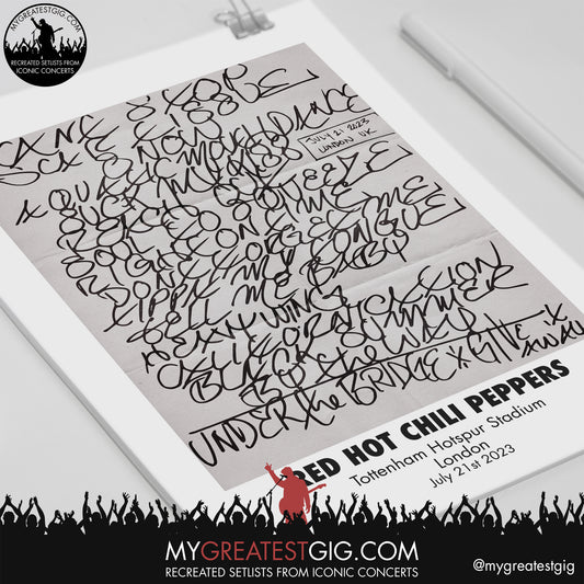 Red Hot Chili Peppers - London - July 21st 2023 Recreated Setlist Poster