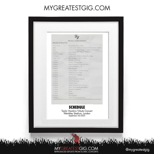Foo Fighters - Taylor Hawkins Tribute - Wembley - Sep 3rd 2022 Recreated Setlist Poster