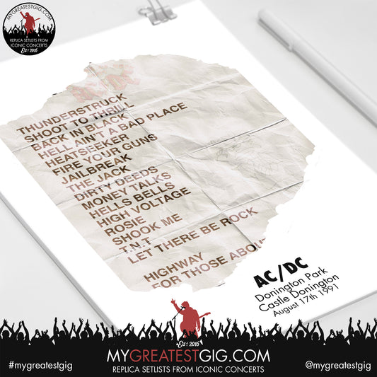 AC/DC - Monsters Of Rock - Aug 17th 1991 Recreated Set List Poster