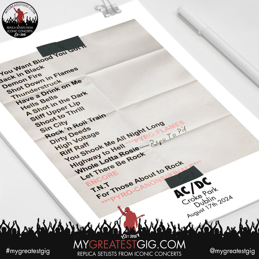 AC/DC - Dublin - August 17th 2024 Replica Setlist Poster