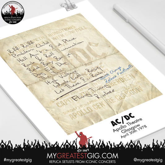 AC/DC - Glasgow - April 30th 1978 Replica Setlist Poster