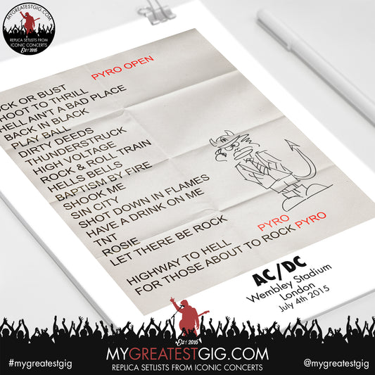 AC/DC - Wembley - July 4th 2015 Recreated Set List Poster