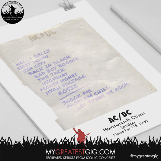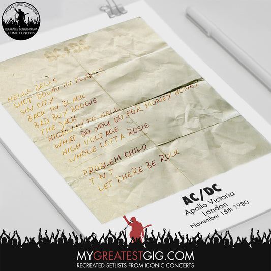 AC/DC - London - Nov 15th 1980 Recreated Set List Poster