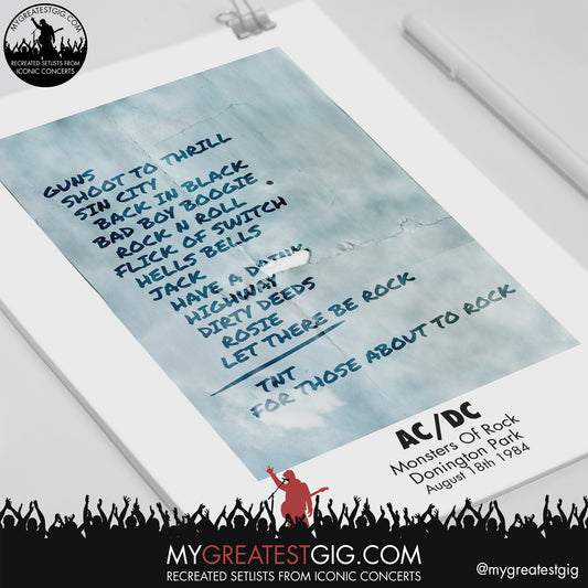 AC/DC - Monsters Of Rock - August 18th 1984 Recreated Setlist Poster