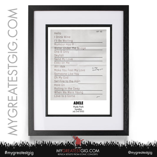 Adele - BST Hyde Park - July 1st 2022 Replica Setlist Poster