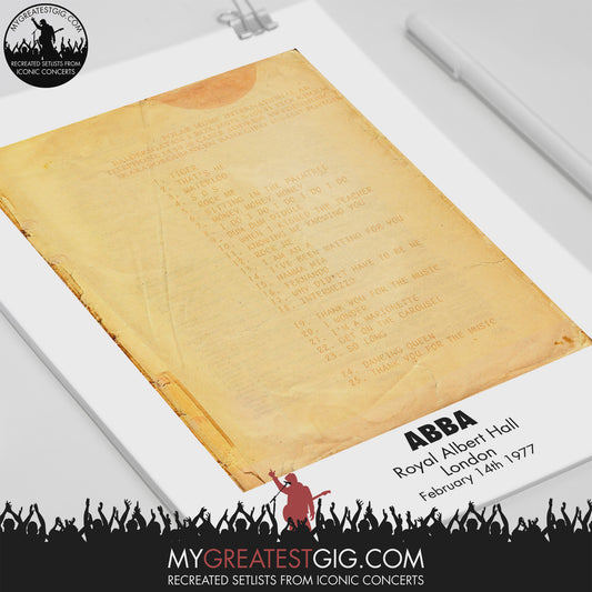 ABBA - London - Feb 14th 1977 Recreated Set List Poster