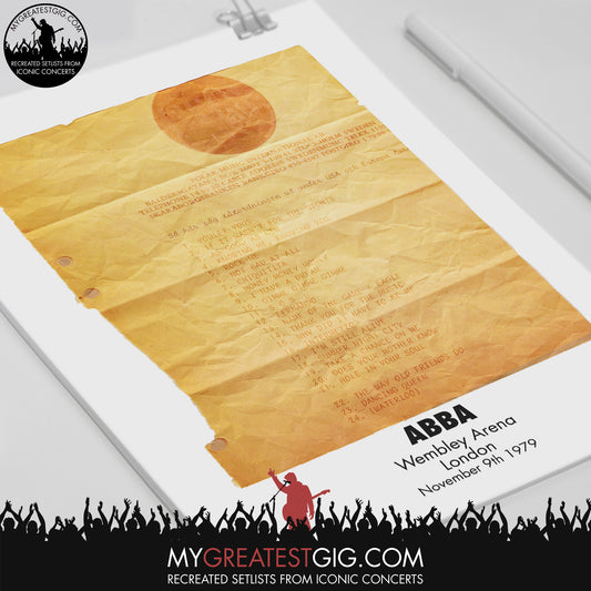 ABBA - Wembley - Nov 9th 1979 Recreated Set List Poster