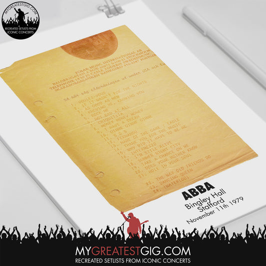ABBA - Stafford - Nov 11th 1979 Recreated Set List Poster