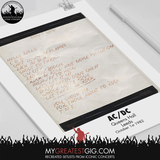 AC/DC - Leeds - Oct 1st 1982 Recreated Set List Poster