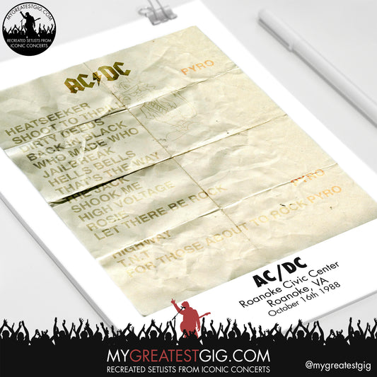 AC/DC - Roanoke - Oct 16th 1988 Recreated Setlist Poster