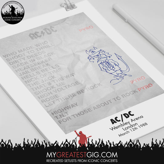 AC/DC - Wembley - Mar 12th 1988 Recreated Set List Poster