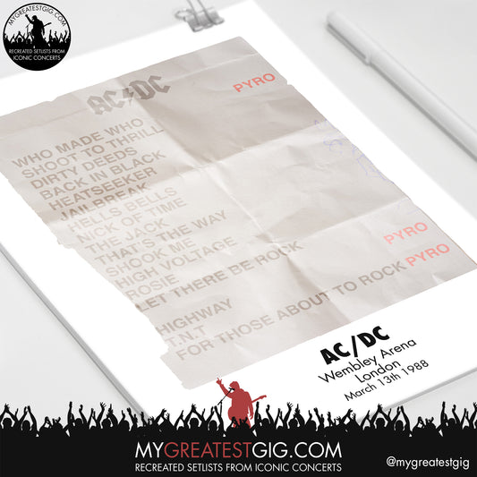 AC/DC - Wembley - Mar 13th 1988 Recreated Set List Poster