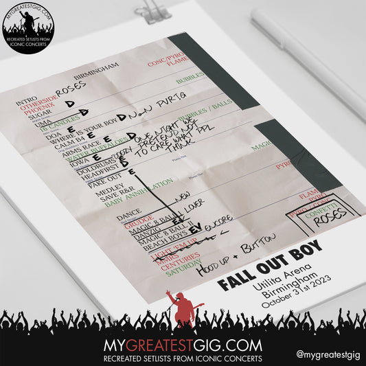 Fall Out Boy - Birmingham - October 31st 2023 Recreated Setlist Poster