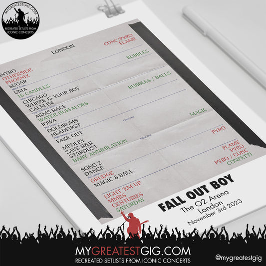 Fall Out Boy - London - November 3rd 2023 Recreated Setlist Poster