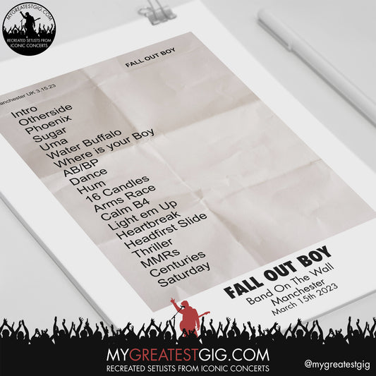 Fall Out Boy - Manchester - March 15th 2023 Recreated Setlist Poster