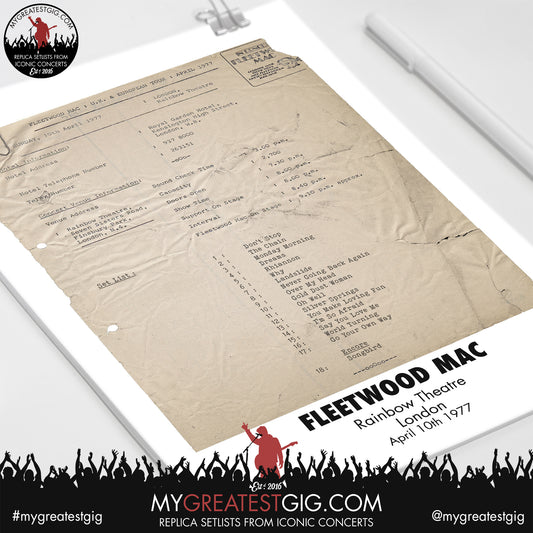 Fleetwood Mac - London - April 10th 1977 Replica Setlist Poster
