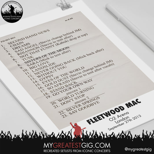 Fleetwood Mac - London - September 27th 2013 Recreated Setlist Poster