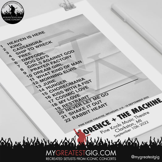 Florence and the Machine - Clarkston - September 10th 2022 Recreated Setlist Poster