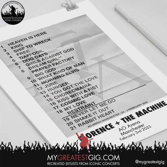 Florence + The Machine - Manchester - February 3rd 2023 Recreated Setlist Poster