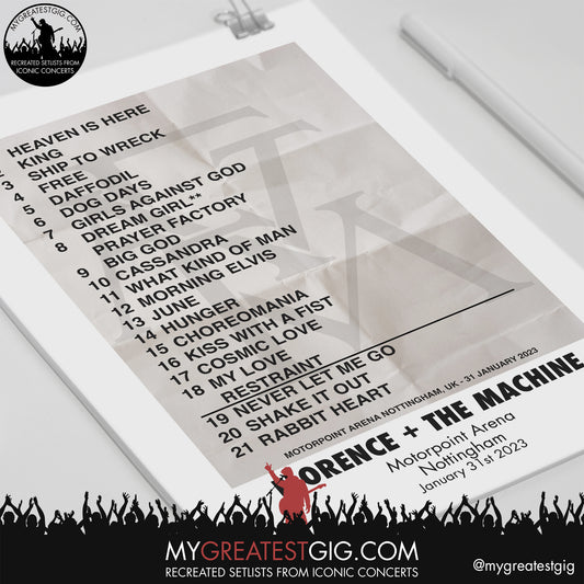 Florence + The Machine - Nottingham - January 31st 2023 Recreated Setlist Poster