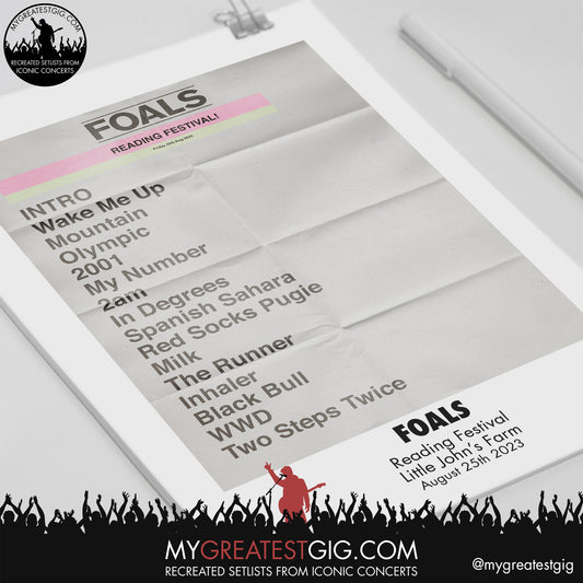 Foals - Reading Festival - August 25th 2023 Recreated Setlist Poster