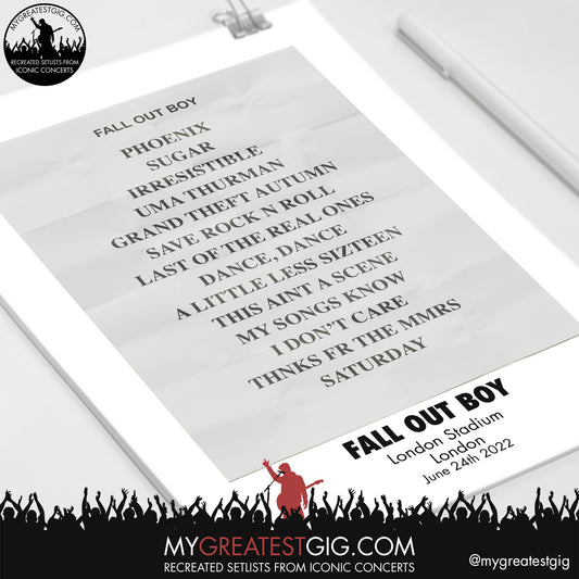 Fall Out Boy - London - Jun 24th 2022 Recreated Setlist Poster
