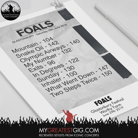 Foals - Glastonbury Festival - Jun 29th 2019 Recreated Set List Poster