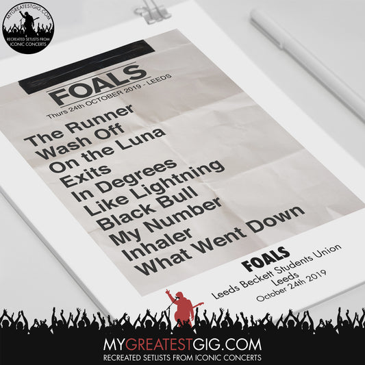 Foals - Leeds - Oct 24th 2019 Recreated Set List Poster