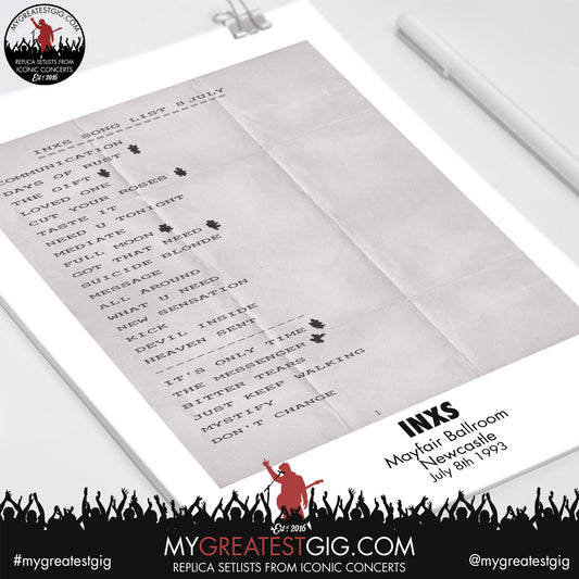 INXS - Newcastle - July 8th 1993 Replica Setlist Poster