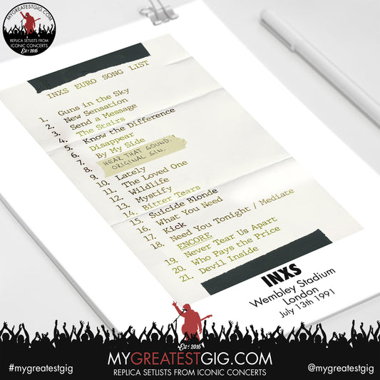 INXS - Wembley Stadium - July 13th 1991 Replica Setlist Poster