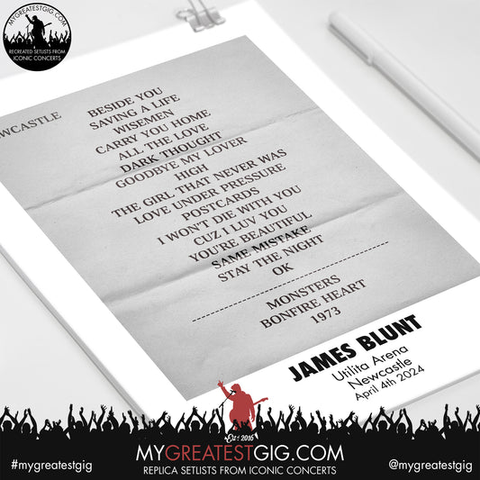 James Blunt - Newcastle - April 4th 2024 Replica Setlist Poster