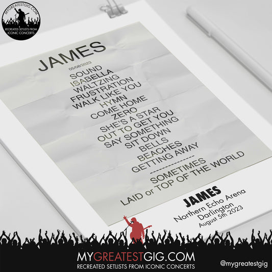 James - Darlington - August 5th 2023 Recreated Setlist Poster