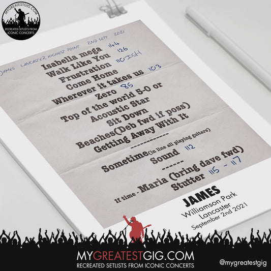 James - Lancaster - September 2nd 2021 Recreated Setlist Poster