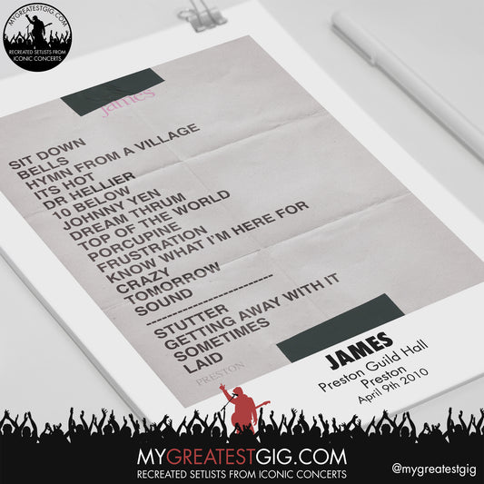 James - Preston - April 9th 2010 Recreated Setlist Poster