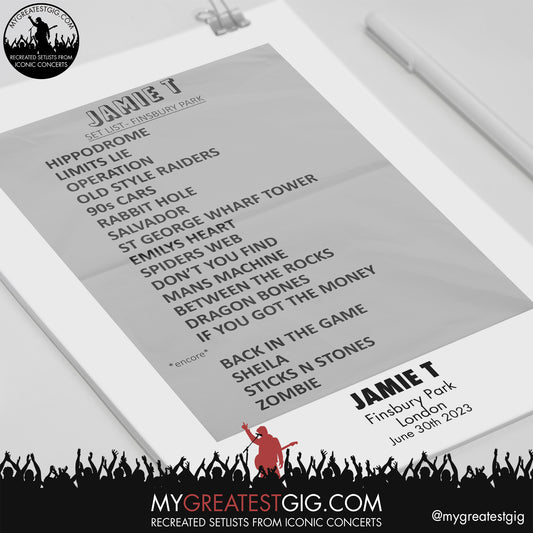 Jamie T - London - June 30th 2023 Recreated Setlist Poster