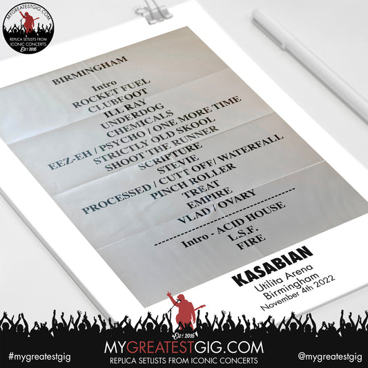Kasabian - Birmingham - November 4th 2022 Replica Setlist Poster
