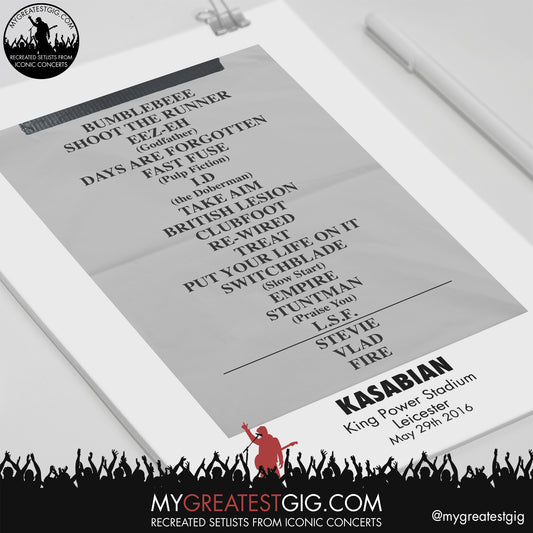 Kasabian - Leicester - May 29th 2016 Recreated Setlist Poster