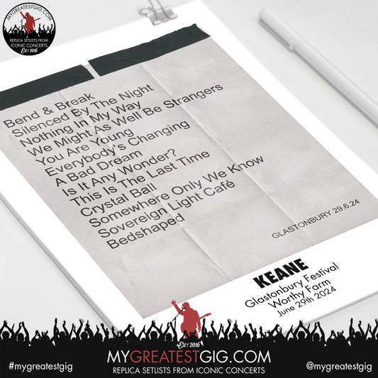 Keane - Glastonbury Festival - June 29th 2024 Replica Setlist Poster