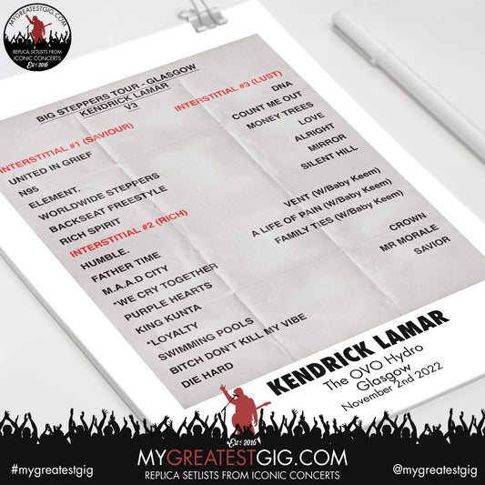 Kendrick Lamar -Glasgow - November 2nd 2022 Replica Setlist Poster