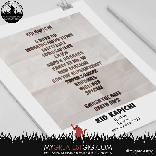 Kid Kapichi - Bristol - January 31st 2023 Recreated Setlist Poster