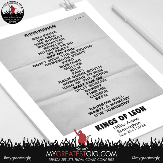 Kings Of Leon - Birmingham - June 22nd 2024 Replica Setlist Poster