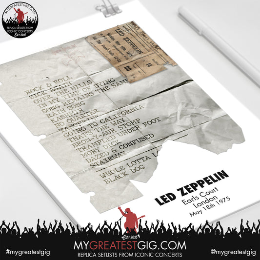 Led Zeppelin - London - May 18th 1975 Replica Setlist Poster