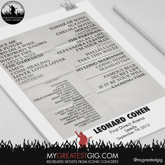 Leonard Cohen - Leeds - September 7th 2013 Recreated Setlist Poster