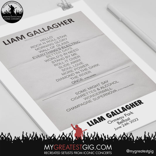 Liam Gallagher - Belfast - June 24th 2022 Recreated Setlist Poster